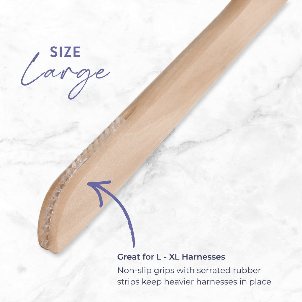 Crafted from Grade A Lotus wood with a smooth finish, each hanger features a 360° swivel, anti-rust chrome hook and subtle Wyld Cub branding for a premium, boutique-style look in your home. Perfect for showing off harness collections, planning outfits, or styling your dog’s wardrobe for photos and events.