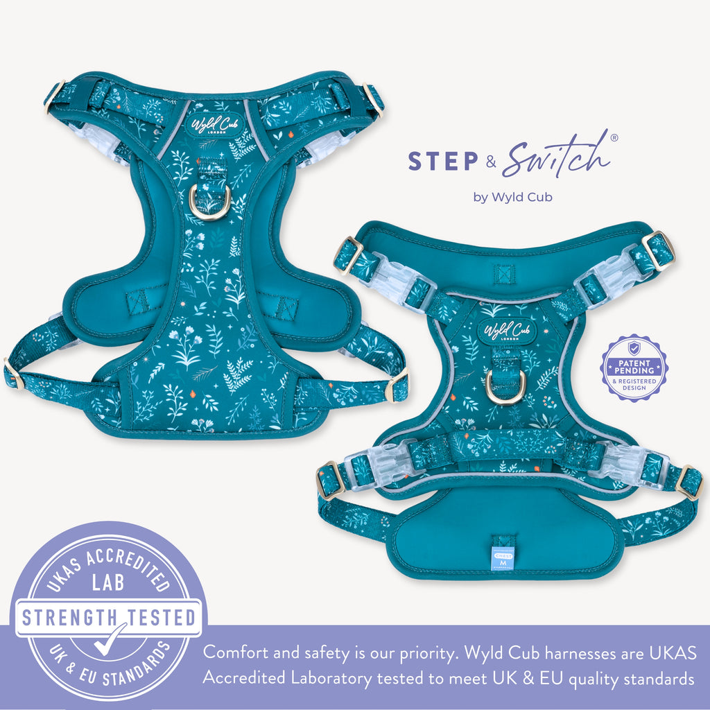 Please note: Front and back panels can only be interchanged with panels of the same size for safety and comfort. Pattern placement may vary. Our harnesses are designed as high-quality walking accessories but are not indestructible. Always supervise your dog and inspect for wear before use. Please see our Safety Notice & Disclaimer for more information.